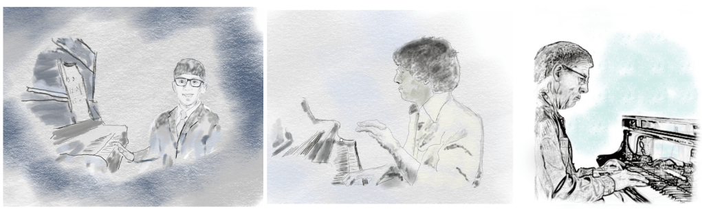 Self-portraits from three different phases of my piano-playing years.